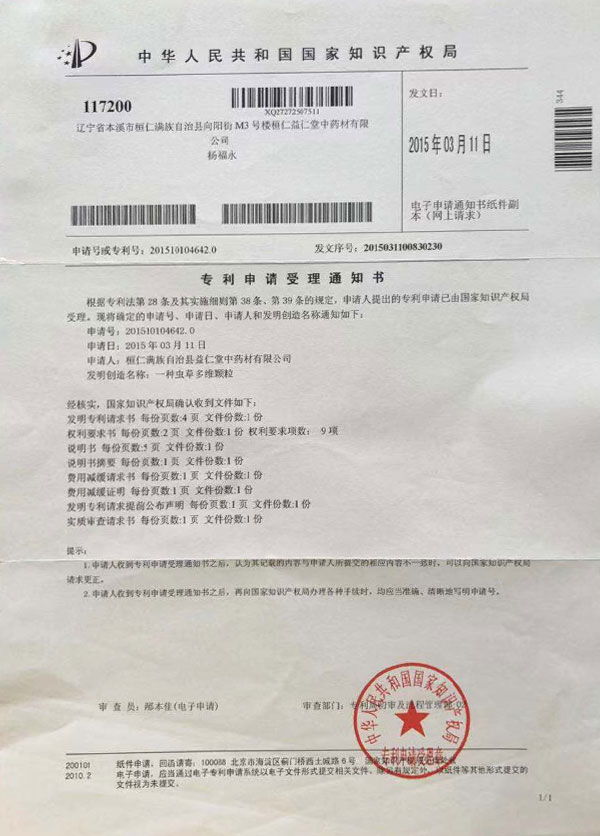 遼寧益仁堂健康藥業(yè)股份有限公司成立于2006年,注冊(cè)資本1060萬(wàn)元,占地面積23677平方米。企業(yè)走公司加農(nóng)戶(hù)加合作社加生產(chǎn)銷(xiāo)售為一體的產(chǎn)業(yè)化路線(xiàn)?,F(xiàn)擁有有機(jī)人參基地一萬(wàn)一千兩百多畝。公司前身“益仁堂”參號(hào)是由公司董事長(zhǎng)王杰先生祖輩王寶善于清宣統(tǒng)二年(1910年)創(chuàng)辦的老字號(hào)企業(yè)。