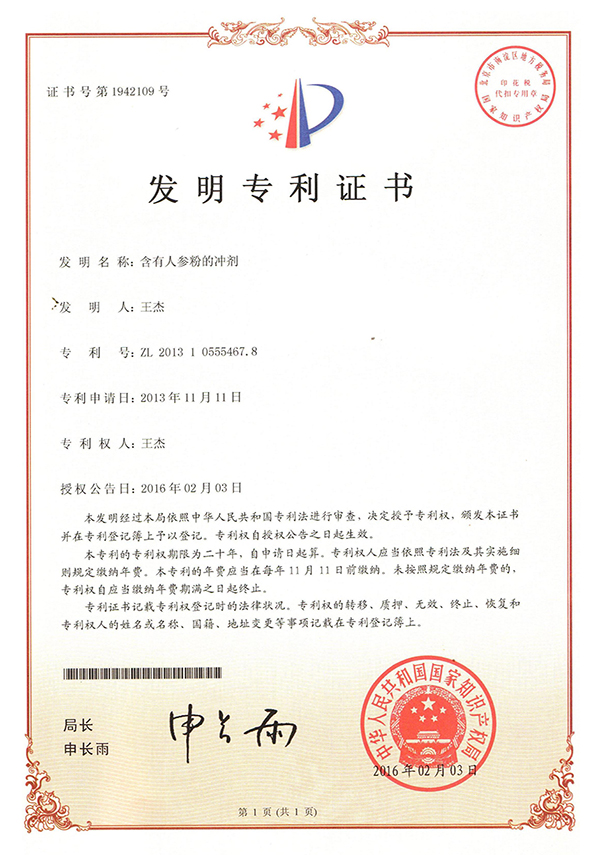 含有人參粉的沖劑