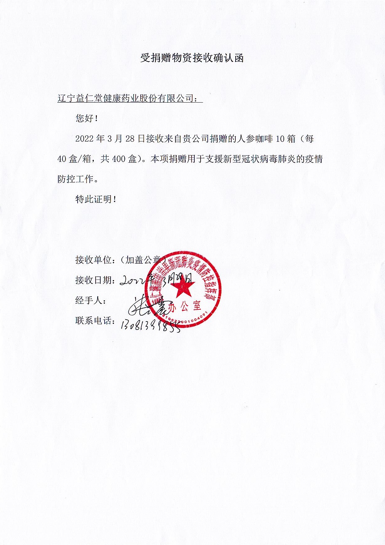 企業(yè)捐贈人參咖啡400盒,所有人參產(chǎn)品均用于支援新型冠狀病毒肺炎的疫情防控工作
