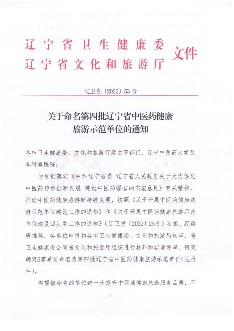 我公司獲批“第四批遼寧省中醫(yī)藥健康旅游示范單位”稱號(hào)