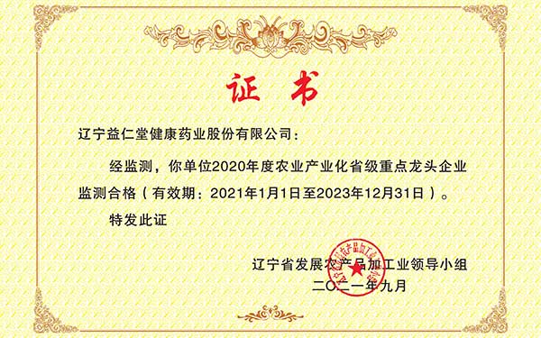 我公司2020年度農(nóng)業(yè)產(chǎn)業(yè)化省級重點(diǎn)龍頭企業(yè)檢測合格