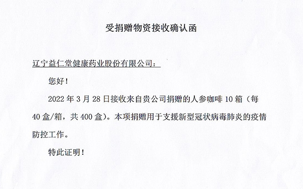 企業(yè)捐贈(zèng)人參咖啡400盒,所有人參產(chǎn)品均用于支援新型冠狀病毒肺炎的疫情防控工作